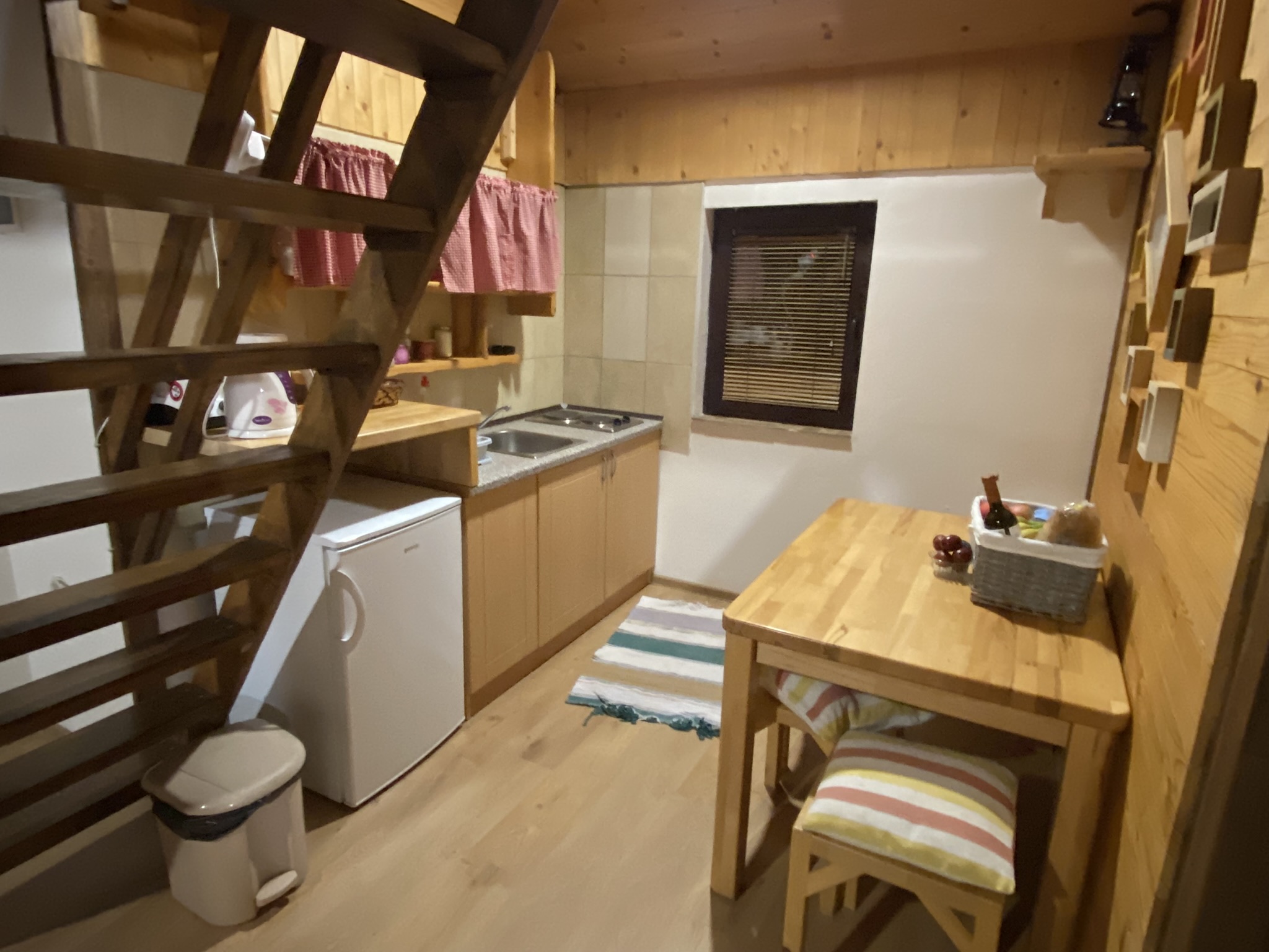 Je verblijft in gezellige houten huisjes op het terrein van de boerderij. Elk huisje beschikt over drie slaapkamers (twee tweepersoonskamers en één eenpersoonskamer), een gezamenlijke woonkamer met bank en tv, een keukentje met eettafel en een gedeelde badkamer met douche en toilet. Vanaf je huisje loop je zo naar het naastgelegen hoofdgebouw en de paardenstallen.