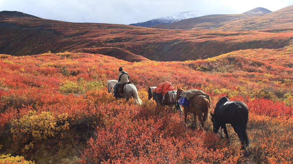 Dag 12Coal Lake – Shine Valley – Whitehorse We breken het kamp op en vertrekken. Het toendra-landschap langs de oevers van Fish Lake is zeer mooi. In Shine Valley nemen we afscheid van onze paarden. Transfer naar Whitehorse voor een warme douche. Diner in een restaurant ter plaatse (op eigen kosten). (ongeveer 4 uur in het zadel)
