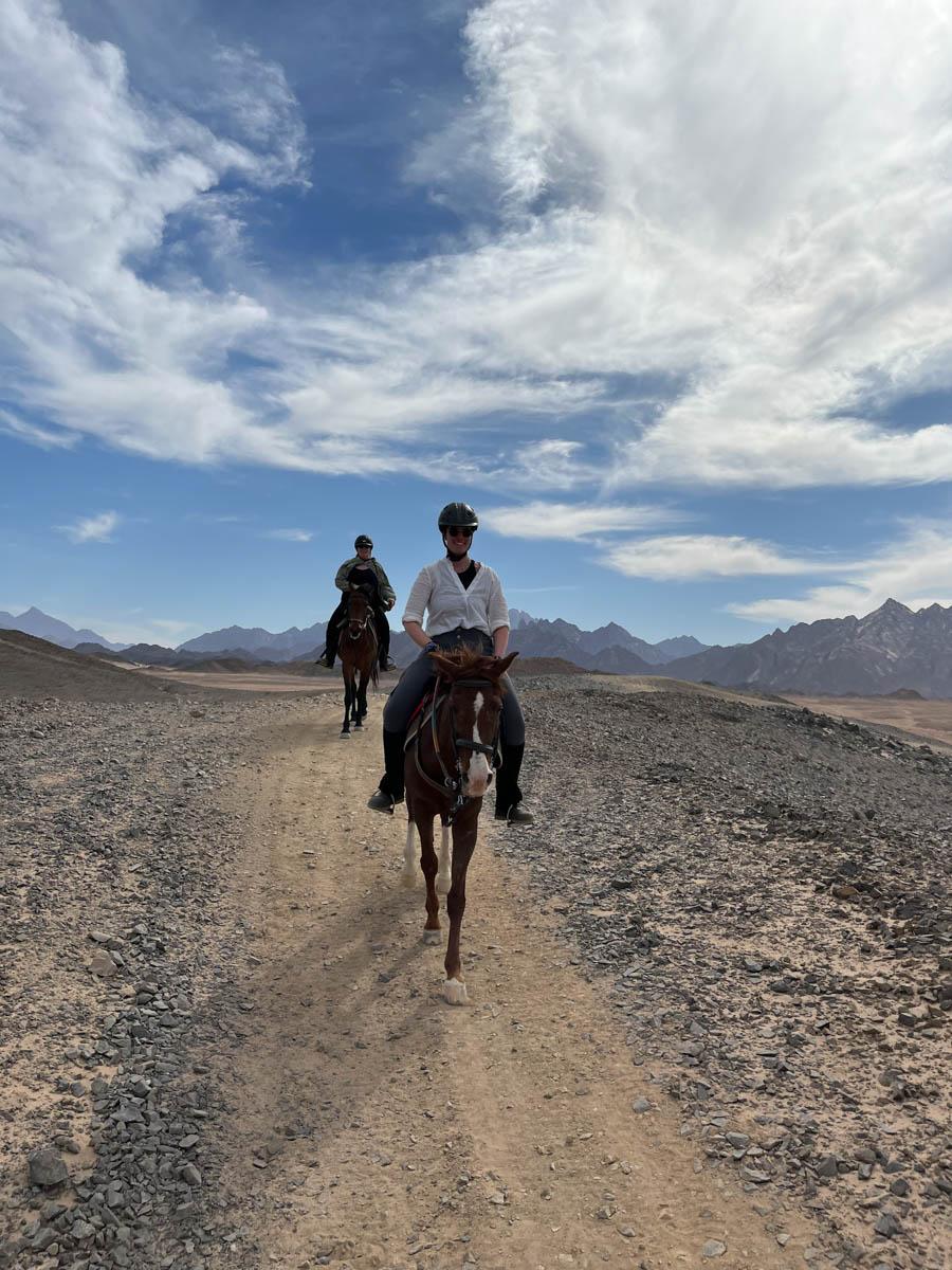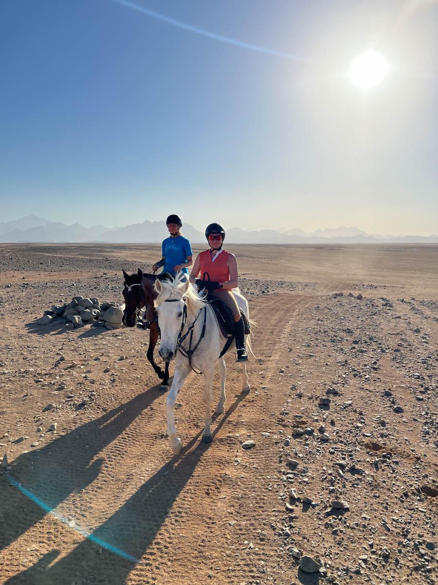 Op zoek naar een paardrijvakantie met avontuurlijke tochten in een filmische omgeving? Op Arabische paarden en Arabische kruisingen rijd je door bergachtig woestijngebied naar onder meer het bizarre Umm Al Huwaytat, ‘Ghost Town’ in Egypte. Een speciale paardrijvakantie voor avontuurlijke ruiters!