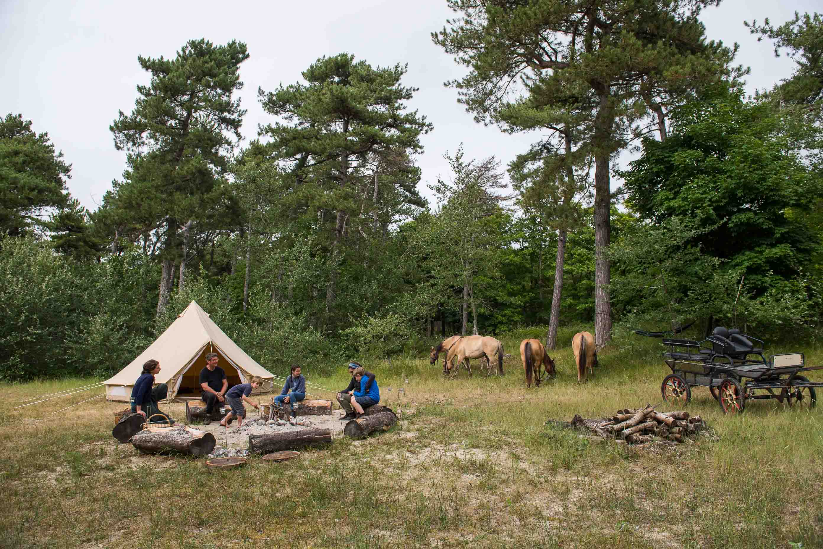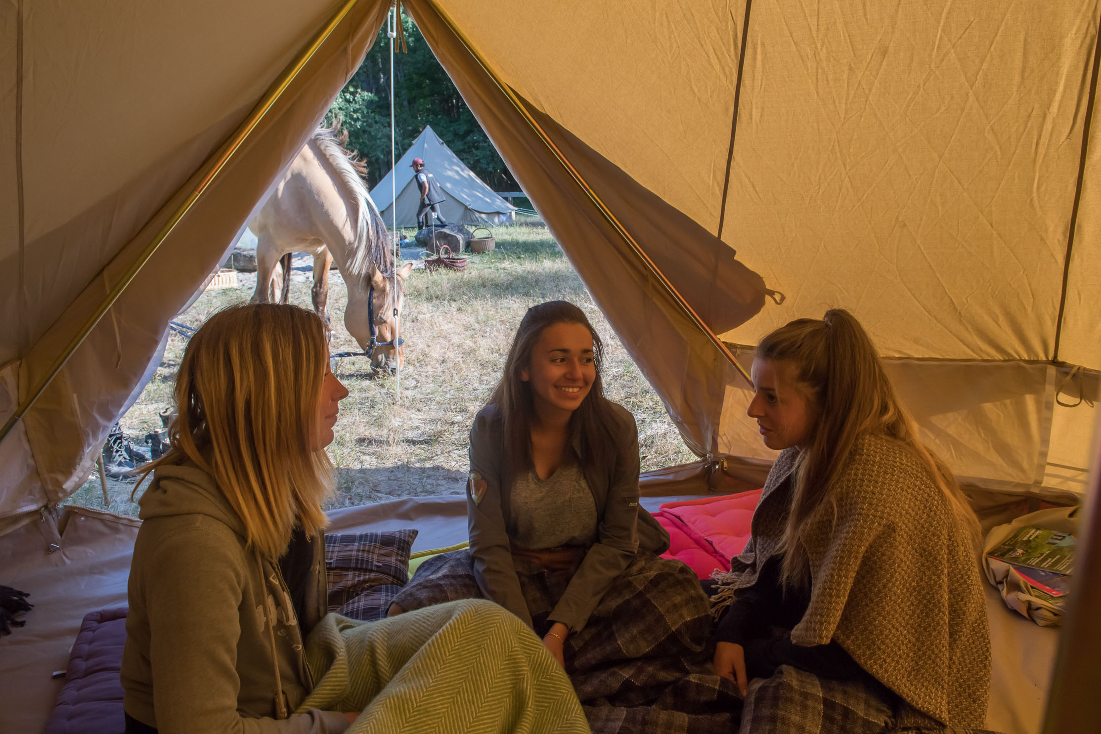 Gedurende de hele tocht word je begeleid door een ervaren ruitergids. Na een eerste rit in de middag bereik je een een rustig gelegen tentenkamp midden in de natuur. De paarden worden hier achtergelaten en je installeert je persoonlijke spullen in de reeds opgezette tenten, die vooraf door de organisatie zijn vervoerd.