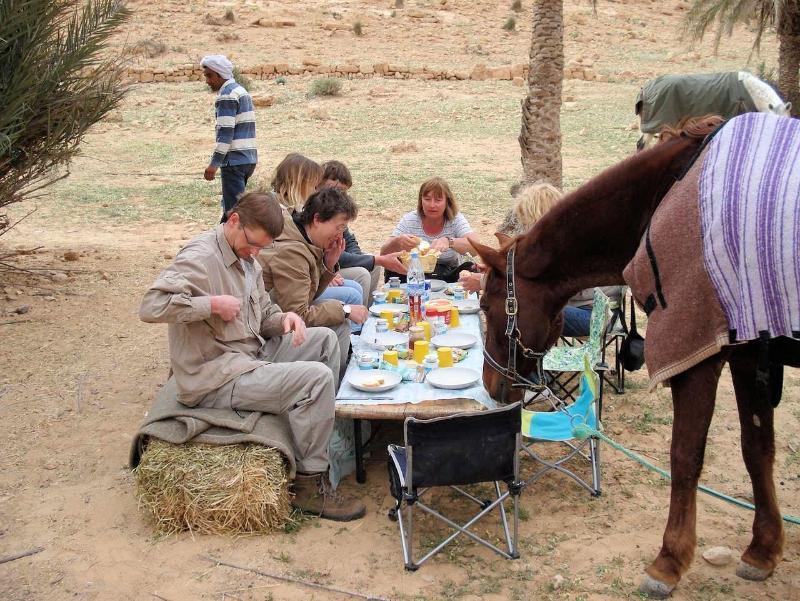 Dag 3Voor de ochtend van vandaag staat een bezoek aan het 800-jaar oude dorp Douiret op het programma. Douiret bestaat deels uit ruïnes. Je zult gegarandeerd worden verrast door deze bijzondere en historische plaats. Na het bezoek keren we terug naar ons kampement en vervolgen onze trektocht te paard door de bergen. We zitten zo’n vier uur in het zadel. Vanuit de bergen rijden we naar woestijnachtige regionen. Lange galoppades in rivierbeddingen en ontmoetingen met kamelen en schaapskuddes zijn kenmerkend voor deze rit. We dineren in Germessa, ver weg van de bewoonde wereld. Overnachting in een kampement.