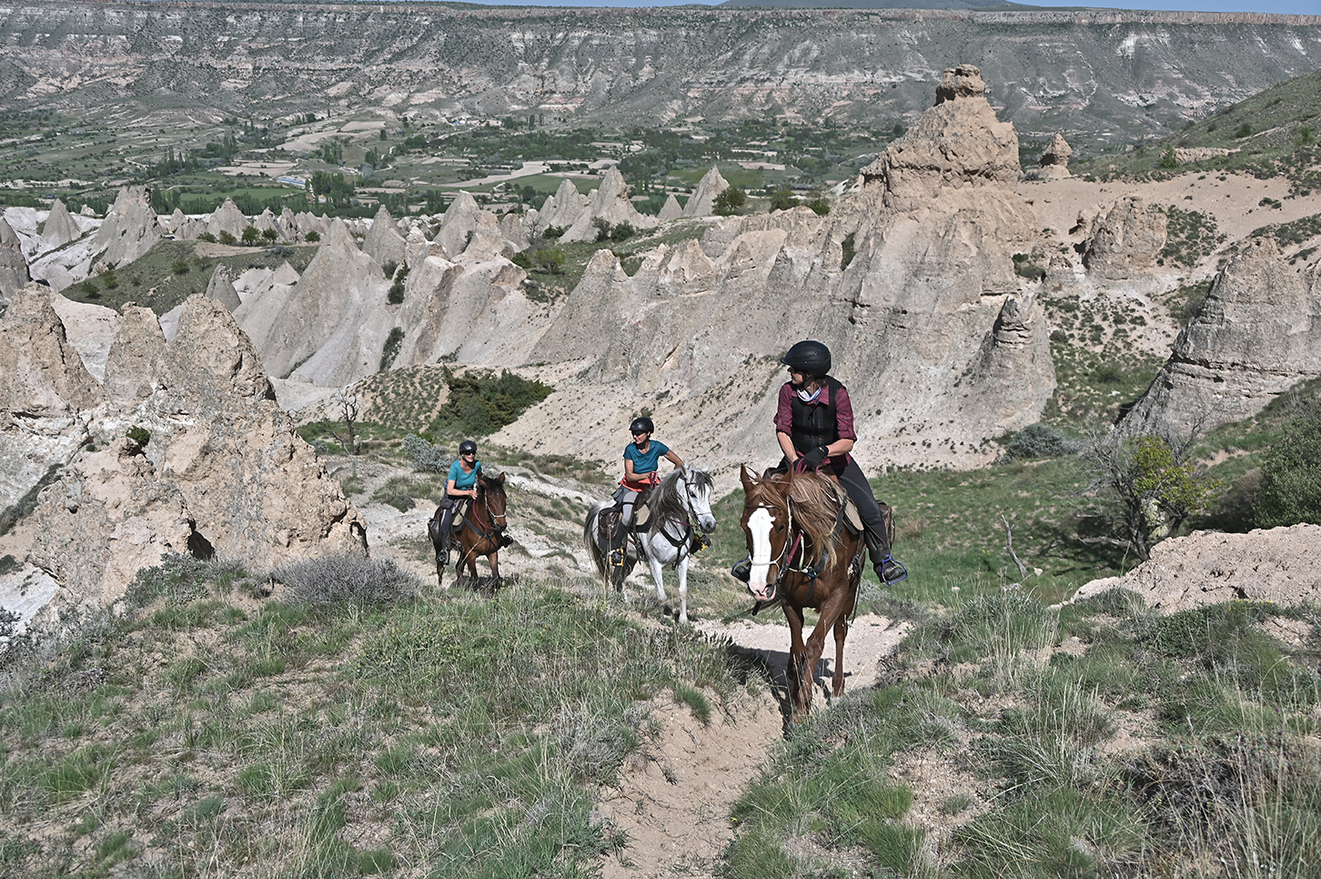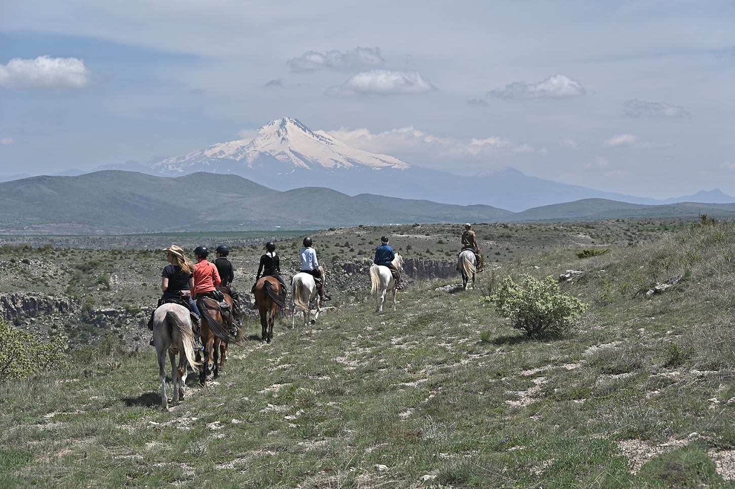 Dag 3We beklimmen het Plateau van Avlak en hebben de eerste adembenemende uitzichten over Cappadocië. We kijken uit over de Taurus bergketen en de machtige Ercyies vulkaan. Na een galopje over de zandpaden stoppen we voor de lunch boven op een klip uitkijkend over de vallei van Karlik. Terwijl de zon langzaam onder gaat, rijden we de vallei in door boom- en wijngaarden en bereiken het kamp naast het Keslik klooster, vlakbij het dorp Cemilkoy.