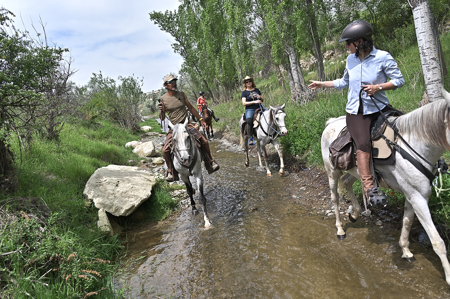 Dag 2‘s Ochtends kennismaken met de paarden, uitleg van het materiaal, doornemen van enkele veiligheidsmaatregelen, daarna vertrekken we. We stijgen via een smal pad, uitkijkend over de vallei van Üzengi. Na een eerste galop over de zandpaden stopen we voor de lunch in de rotsvallei van Taslik. U passeert het oude Griekse dorpje Mustafapasa en we kijken uit over het Damsameer. Tegen de avond bereiken we het kamp in de bossen van de Cemece vallei.